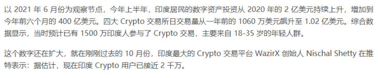 根据上图的描述,印度的 crypto 投资量也在非常迅速地提升,同时大部分都来自印度的年轻人。这部分年轻人会成为印度未来的发展基础。