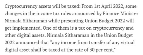 2022 年 4 月 1 日后,加密货币和其他数字资产将纳入所得税的征税。其中的规范条例规定将对出售加密货币的收益将按 30% 的税率征税。这将会大大打击印度的加密货币发展。