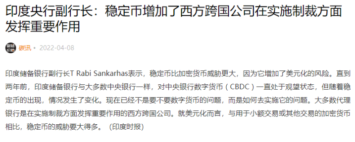 印度本国货币贬值严重。高通胀带来的负面影响需要考虑。这很重要的部分需要考虑的方向包括本土卢比稳定币,本土 defi/Cefi 等。