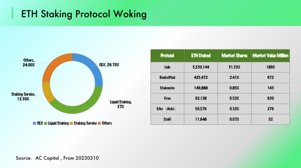 为什么 LSD 协议具备投资机会?当前以太坊的质押率仅有 14%,相比于其他的 POS 公链(50% 以上)的质押比例,以太坊节点质押的市场空间还没有完全打开。以太坊节点的收益来自于质押量与费用收入,做一个中性假设,如果上海升级后,以太坊的质押率可以达到 50%,相较于当前的水平提升 257%,运营节点的 Consensus Layer Reward 预计可以提升超过 60%(Consensus Layer Reward 与质押量并不是线性相关)。与此同时,上海升级之后,更加灵活的机制会进一步压缩 ETH 与其衍生品的价差,有助于激活 LSD Token 的生态化应用。因此在可以预见的未来,LSD 协议的盈利空间与发展潜力有望增强。