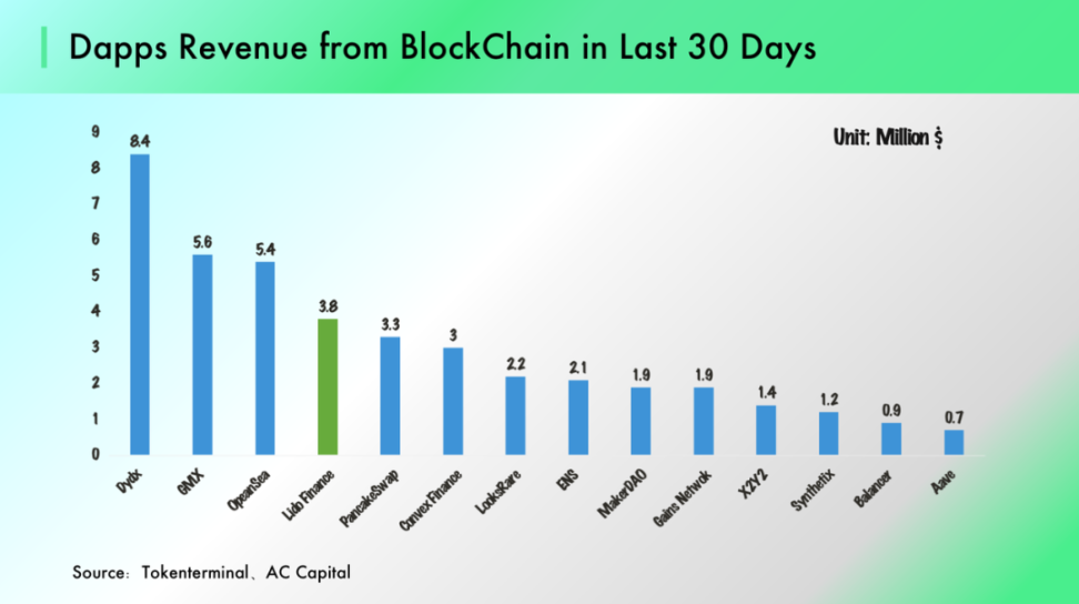 在 2022 年 Q4,从业者可以较为清晰的投资者的偏好:机构更加倾向于基础设施,而不是重度依赖流动性的 GameFi、NFT 等协议;MPC 钱包、跨链桥、ZK、中间件等项目书在市场上最为抢手。值得一提的是,基础设施协议也存在明显分化。在经历过 Terra、FTX 等黑天鹅事件后,投资者的风险偏好被明显压制,大家更希望看到协议可以产生正向收益为自身的发展造血,而不是向投资者伸手要钱。从商业模式来看,ZK、钱包等协议营收增长需要依赖链上的活跃交易,强 Beta 属性的协议,在熊市时期很难获取足够的收益。在这样的背景下,以 Lido 为代表的 LSD 协议迅速发展,得益于清晰的商业模式与确定的收益能力,在市场的回暖之前,Lido 的市值早已超过 MakerDao,排名在 50 名以内。