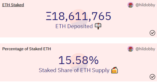 但另一方面,质押奖励占整体质押的比例极其有限,仅能作为评估市场情绪的依据之一。随着 4 月 26 日下午的市场反弹,ETH 质押净流出变为了 51.7 万个 ETH,扣除领取的质押奖励后奖励净流入了 44.6 万个 ETH,意味着在日内反弹行情的当下,有较长期质押预期的 ETH 净流入了 5 万个。目前总体质押额已经达到了 1861 万个 ETH,质押率也达到了 15.6%。