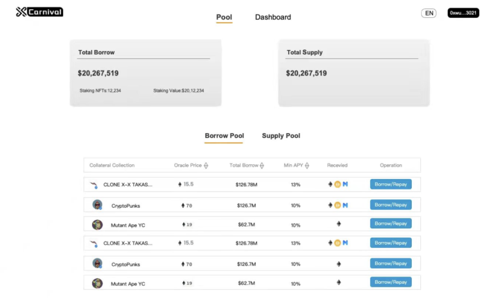 通过Pool to C模式,借贷池的使用场景提高了资产使用率和交易效率。XCarnival 有望真正释放NFT流动性,为NFT抵押借贷市场赋能。
