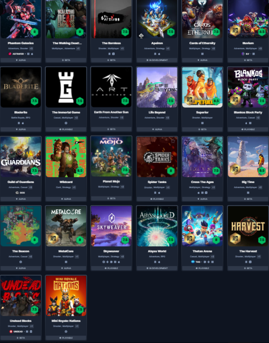 参考 Web3 游戏平台的 Rank 评分。Rank 评分可以参考的平台有 PolkaStarter、3XP 和 NAGA Games。附图是 PolkaStarter Rank 评分 7.5 分以上的 Web3 游戏。