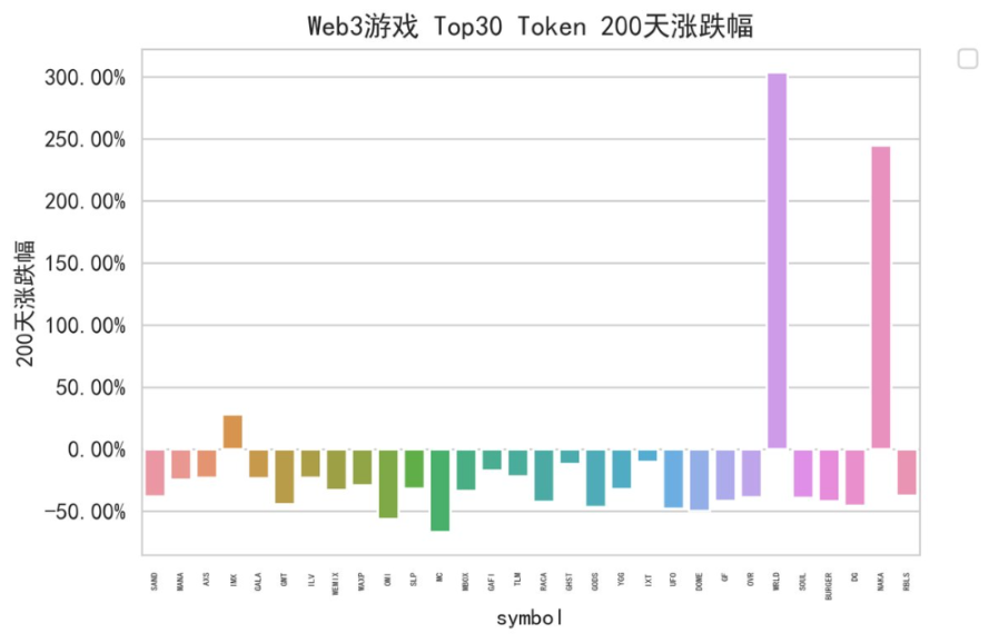 如附图所示,除了两个小型项目之外,Web3 游戏 Top30 Token 的 200 天涨跌幅在 0%~-50% 区间,远远跑输加密市场这段时间内的β收益(即 BTC200 天涨跌幅)同时 Web3 游戏 NFT 的交易量和地板价,也总体处于下滑状态另一方面,Web3 游戏的 UAW(独立活跃地址数)也在不断下滑由于撸毛暴富的传奇一再上演,不断给群体制造焦虑,现在链上活动的最主要类型变成了撸毛交互而没有财富效应的 Web3 游戏,处在「狗都不理」的状态。总之,现在的 Web3 游戏赛道的现状是,Token 价格萎靡,真实用户流失,赛道的寒冬仿佛永远不会结束。