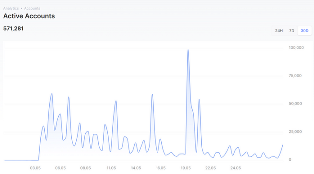 如果采用 Artemis 的统计方法,即 24 小时发生交易的独特钱包数,并对比同为非 EVM 链的 Solana 和 Aptos,则数值更低: