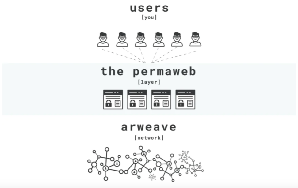 Arweave本身就是一个致力于永久数据的网络,它有以下这些特点:我们重点看看Arweave的开发者友好度有多高。首先,Arweave支持在浏览器端使用http call,而不用写API,这样更容易让产品对接到区块链上;具体可以理解为,安装Chorme扩展程序将Arweave钱包导入到网页,就可以读取和写入数据。此外,Arweave在推动Atomic NFT的发展,可以任何一小块数据都可以成为NFT,几乎是无感知的上链体验。如果要与其他链交互,Arweave生态中有节点服务商Koii,跨链网络Dojima Network,预言机Limestone,支付网络Everpay等等产品可以使用。很多产品,希望将Arweave的思想发扬光大,我们在Open Web Foundry的路演上可以看到很多应用;比如有ArDrive,ArNews,DeChat,Squad,Akord等给C端的媒体类的产品,也有Sarchophagus等一类数字保险箱的产品,还有给NFT作者提供的Verto交易协议,以及Mintbase和InfiNFT这样的基于Arweave存储的NFT交易发行平台。总之,在做Web3产品的时候,如果你的业务需要在区块链上保管数据,那么一定要深入利用Arweave的方方面面,可能会大幅提升产品的独特性。The Structure of Arweave, Credit: Arweave
