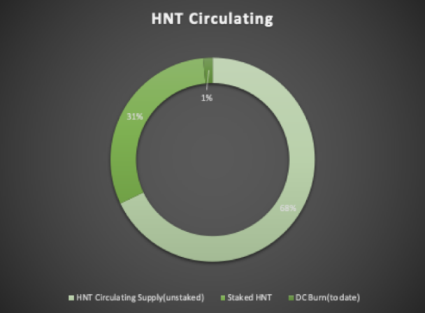 这个消耗量占3月份由区块链产出的HNT(大约是2,500,000HNT)的7%,如果消耗比例保持一致,那么每年DC销毁的HNT量约为1,760,272,占整体流通中的HNT大约是1.6%,占总供应量不到1%;