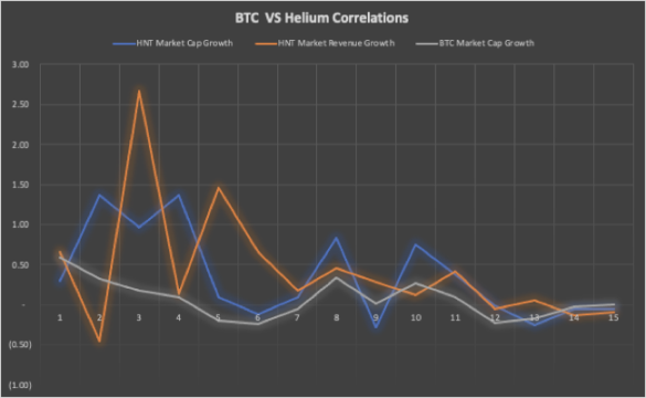Correlation between growth of BTC,HNT and Helium Revenue 2022Q1 制图:FutureMoney