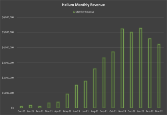 Growth of BTC, HNT and Helium Revenue 2022Q1 制图:FutureMoney