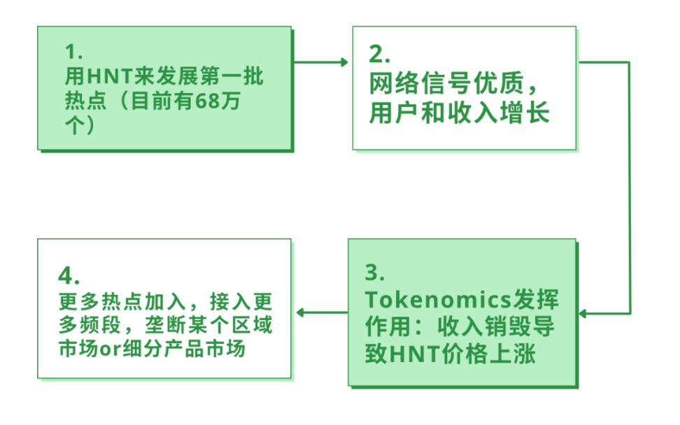 有效的Tokenomics:有一个容易理解并且通缩的Tokenomics,只要有新的热点加入,以及用户不断使用,HNT的数量就不断减少,引起增值;