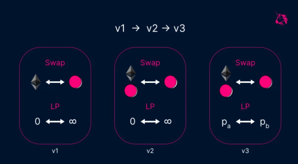 而 Uniswap V3 则接入集中定价器和更精细的流动性管理工具,力求持续提升资本效率和交易对的韧性。此番迭代是 Uniswap 在优化用户交易体验和流动性管理选项方面的发力。在 2023 年 6 月 14 日,Uniswap V4 代码草稿发布。