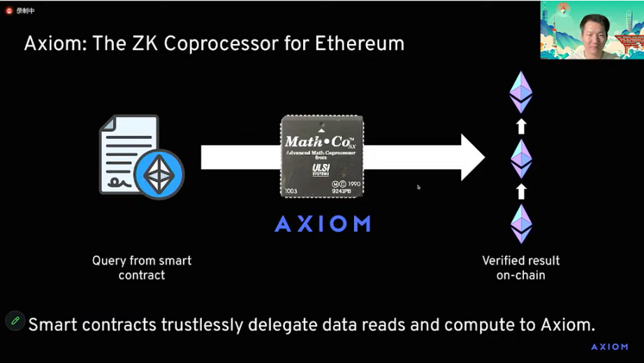 The way that works is we allow some smart contracts to trustlessly delegate the two operations we’ve discussed so far to our off-hand system so they can delegate data reads and verifiable computation to Axiom.