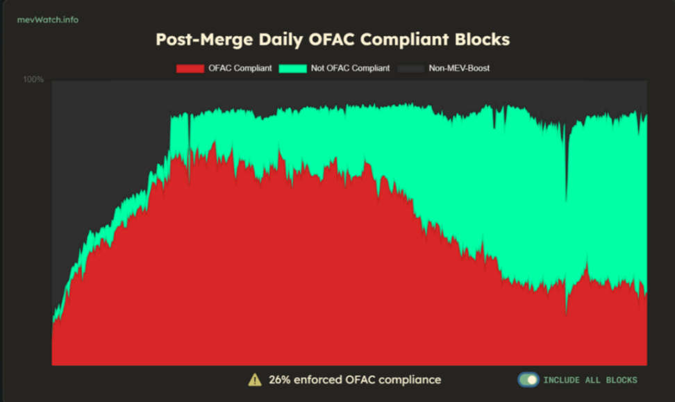 此外,由 Flashbots MEV-Boost 实现的 PBS 方案中,由于 Relay 的信任假设,所以会产生交易审查的问题,这是对以太坊抗审查、无许可的愿景的严重破坏。