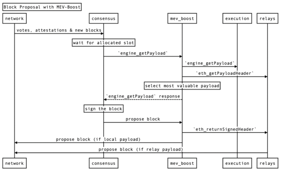 Proposal 之前 Validator 需要先向 MEV-Boost 和 relays 进行注册,确保 block builders 能够为一个指定 validator 的 proposal 构造区块。