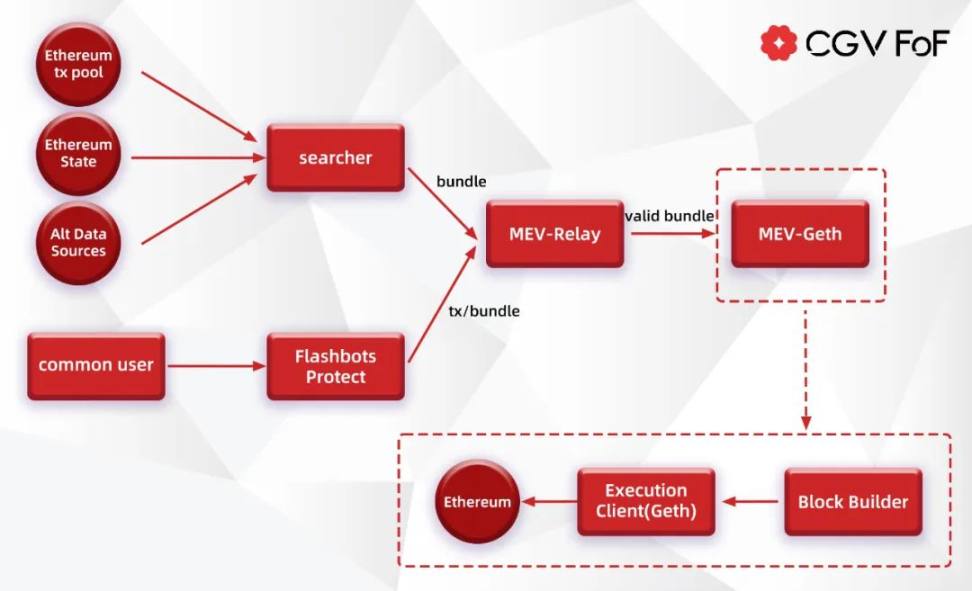 MEV-Geth 让 Miner 与 Searcher 分享了 MEV 收益;MEV-Boost 让 MEV 在 Proposer、Builder、Searcher 之间分配,同时保护了用户的交易不被 Front Running。