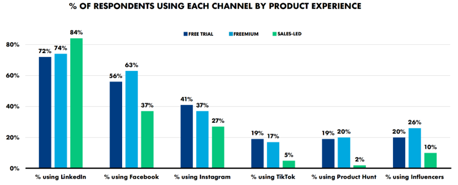 • PLG 公司从更多的社交渠道吸引新用户。41 % 的免费产品使用是由 Instagram 为入口(我们没有询问关于 Threads...)