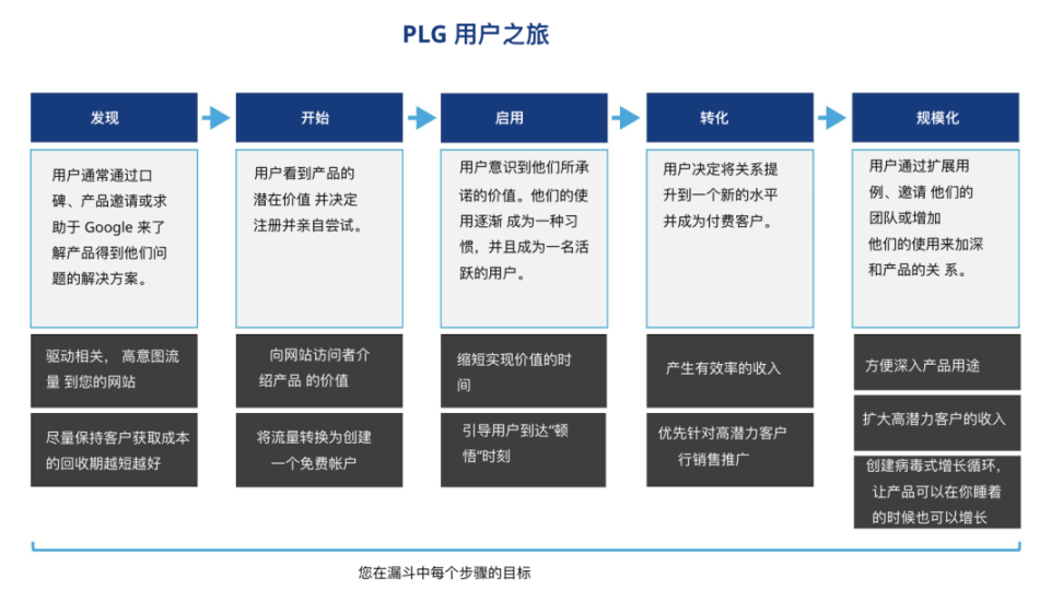 值得实践的“PLG 闭环”:发现、开始、启用、转化、规模化。