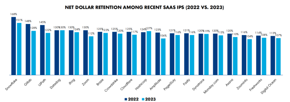 扩展变得更加困难 - 即使在上市的 SaaS 公司中,NDR 也在下降。