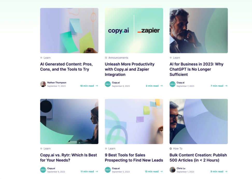 Copy.ai 在官网提供了博客页面,不过看更新频次,也是非常高的,基本两三天更新一篇,通过产品导向的内容一边引导用户,一边优化 SEO,从而建立营销内容领域文案生成的话题性,越早推出,也越具备先发优势。