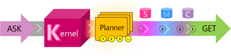 - 使用 SK,可以更灵活地将嵌入式内存与 LLM AI 结合,SK 会提供规划、资源、步骤和管道等概念,来组织和执行请求 。