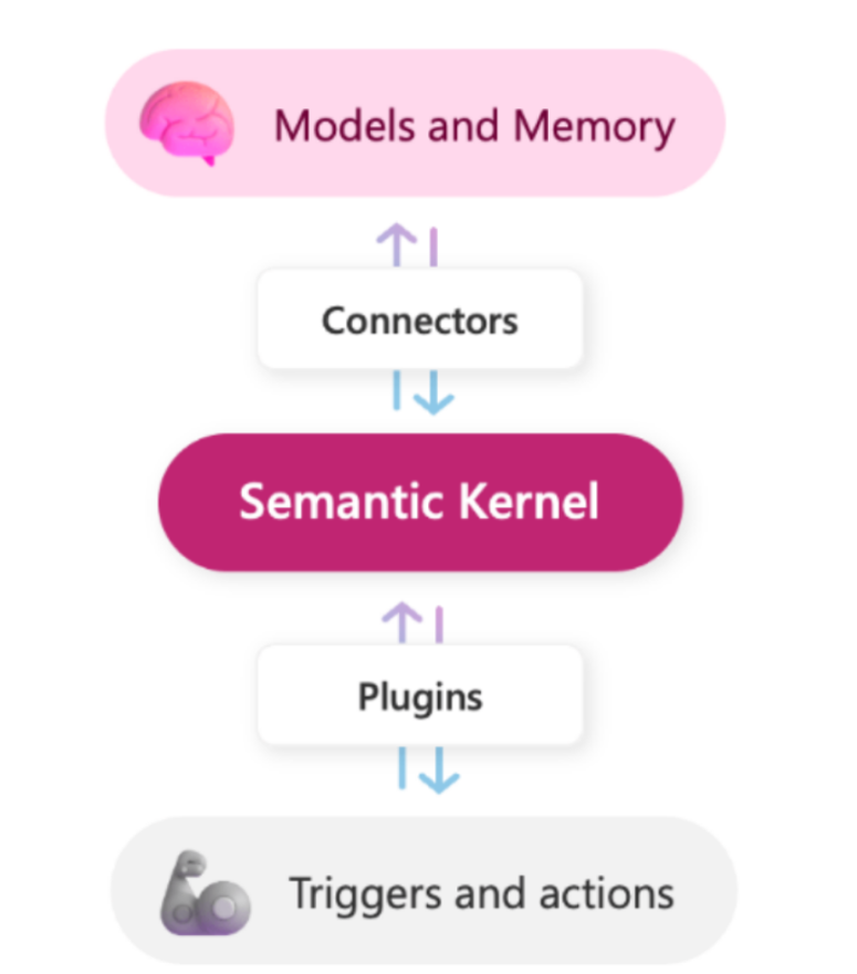为了让开发者能够更灵活地将人工智能服务集成到他们现有的应用中,Semantic Kernel 提供了一组 Connector,使集成 Memory 和模型变得简单,它还可以通过 Plugin,为应用集成功能,而这些 Plugin,可以响应触发器并执行操作。因此, Semantic Kernel 提供了 Connector 和 Plugin 的可扩展性,我们可以使用它来协调来自 OpenAI 和 Microsoft 的 Plugin,和各种不同的模型进行搭配,比如,可以使用 Semantic Kernel 来协调 ChatGPT、Bing 和 Microsoft 365 Copilot 构建的 Plugin,运行 OpenAI、Azure、和 Hugging Face 的模型。