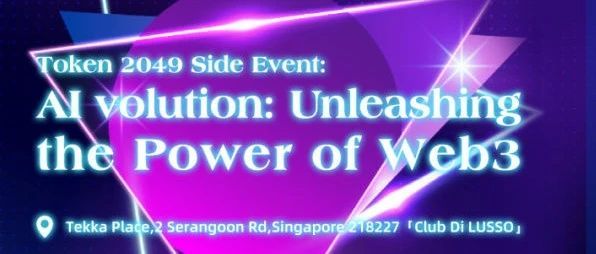 由 CGV FoF、AVATAR DAO、Aqua labs、链得得 ChainDD 主办,SRC、DOKO、K24、ChainStar、VNS network联合主办的 Token 2049 Side Event: AI volution: Unleashing the Power of Web3 酒会将在 9 月 13 日于新加坡隆重开启。