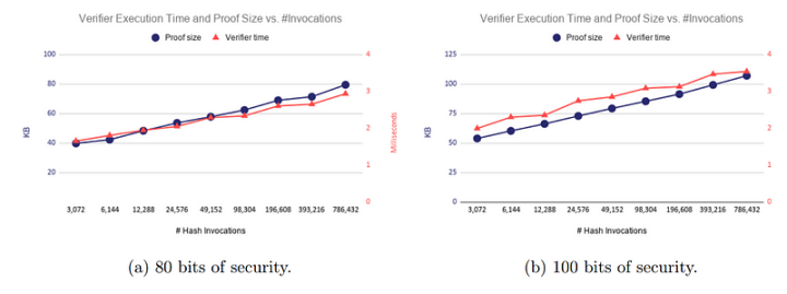 从底层算法来看,Starknet 采用的核心算法 STARK 更适合大规模的计算应用,其平均验证时间和证明大小(Proof size)将随着验证规模扩大而不断降低。如下图所示,当哈希调用(Hash Invocations)为 3072 次时验证时间为 40 毫秒,平均得 76.75 次 / 毫秒;当哈希调用为 49152 次时验证时间约为 60 毫秒,平均得 819.2 次 / 毫秒,证明大小也同理。因此,在创建大型全链游戏方面,STARK 算法优势明显,能够实现高 TPS。