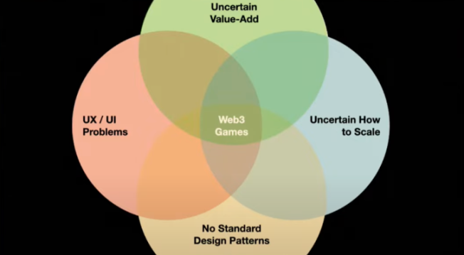 在今年的 ETHCC 上,来自 AllianceDao 的 Will Robinson 在其演讲中提出了制约全链游戏发展的四个问题:用户体验和用户界面问题(UX/UI Problems)、可扩展性问题(Uncertain How to Scale)、缺乏游戏设计标准问题(No Standard Design Patterns)和价值不确定问题(Uncertain Value-Add)。