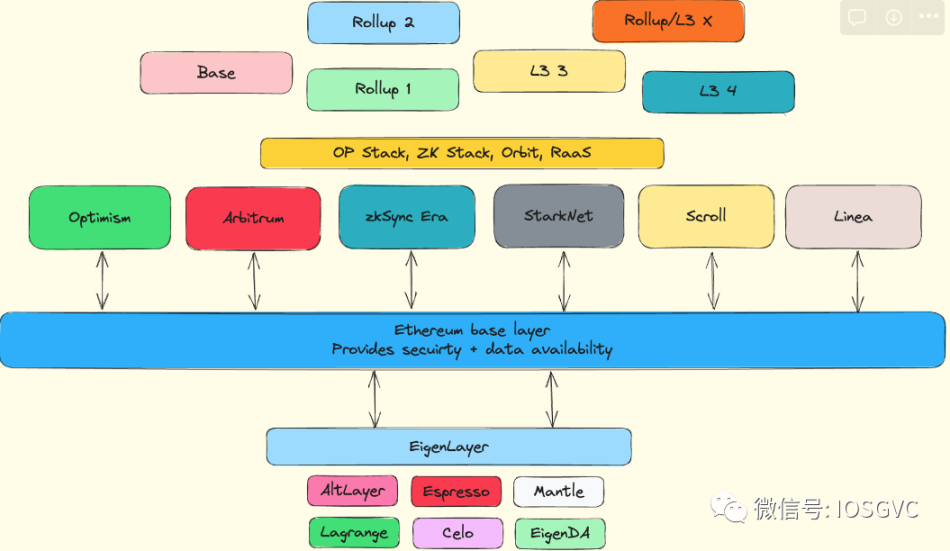依据当前各个模块化组件蓬勃发展的现状来看,我们已经有了 Rollup-centric Roadmap 愿景的雏形。在此架构下,以太坊逐渐退居其次,卸下执行层的包袱,成为一个足够安全的结算层和数据可用性层。通用的 Rollup 主要承担扩容的任务,承载大部分的应用和用户流量,并进一步通过 L3 实现对隐私、游戏等应用的专用执行环境的支持(即 Fractal Scaling)。RaaS 为开发者提供快速基础设施启动的工具。Restaking 借助现有的以太坊质押敞口,为新的模块化组件提供经济信任、去中心化信任和 Ethereum Alignment。随着 ETH 的效用不断外延,这些组件也在强化以太坊作为基础层的地位,并且提供价值反馈。