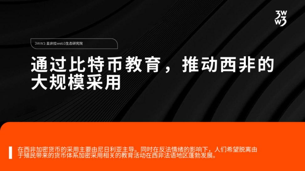 在西非加密货币的采用主要由尼日利亚主导。同时在反法情绪的影响下,人们希望脱离由于殖民带来的货币体系加密采用相关的教育活动在西非法语地区蓬勃发展。