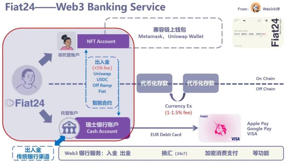 Fiat24 将 NFT Account 与瑞士银行账户绑定,进一步将区块链技术整合到传统金融体系中。