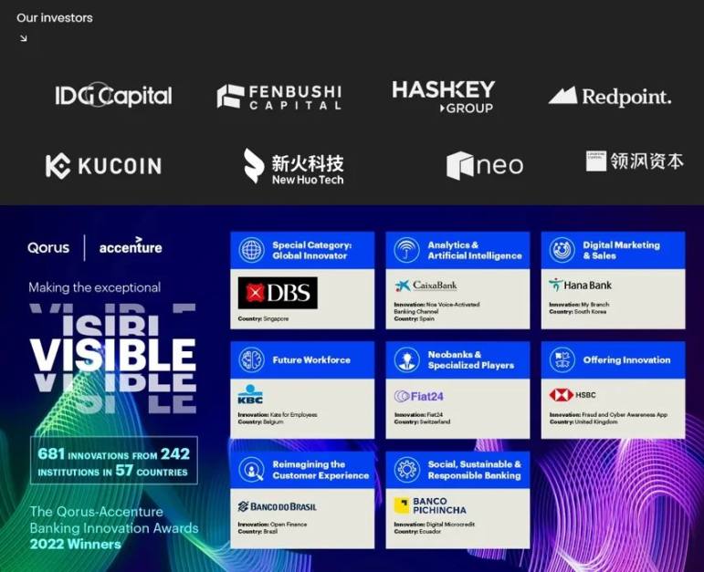 Fiat24 创新的区块链银行架构将传统银行金融服务和 Web3 区块链支付创新无缝融合,获得了诸多顶级资本的青睐,同时也获得了 Qorusand Accenture 授予的 2022 最佳新兴银行(Neobanks & Specialized Players)的殊荣。