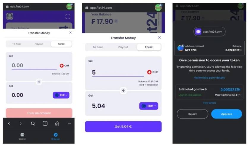 由于 Fiat24 是一个通过协议运行的 DApp,对于用户而言,可以直接通过非托管钱包(如 MetaMask 或 Uniswap 钱包)轻松访问 www.fiat24.com 进入瑞士银行电子门户,并且这种在 NFT 层面设置 KYC 实名参数的操作,能够让用户在其他 DApps 中依然保持匿名。