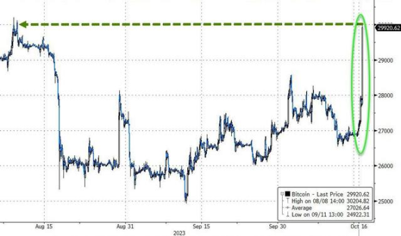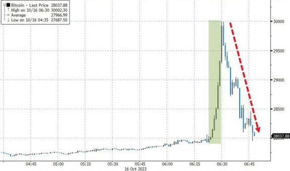 不到半小时,比特币从 2.8 万美元下方一根针来到 3 万美元上方,两个月来首次突破 3 万美元关口。
