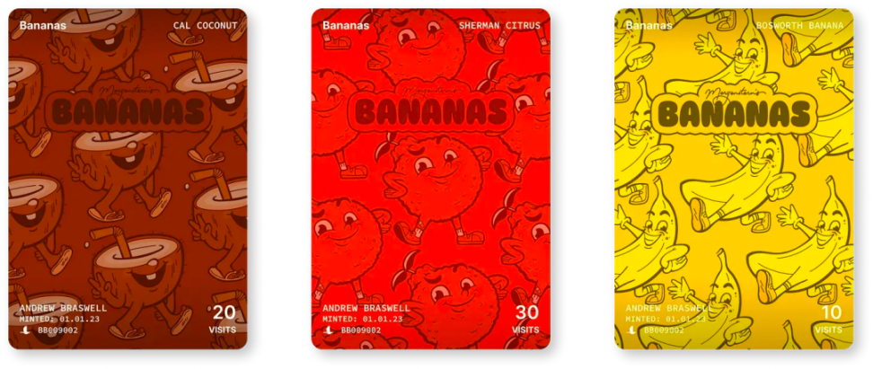 Bananas Country Club 则是一家专门提供无乳制品软冰淇淋的实验性分店,其付费高级会员计划为顾客提供了丰富的特权。会员以 33.33 美元的价格享受特权,包括在 2023 年 4 月 20 日至 30 日首期开业期间体验早期菜单尝鲜、免费冰淇淋,多次访问还可获得 $FLY 积分奖励。此外,会员有机会参与新口味选择和提供反馈,为店家的产品创新提供支持。