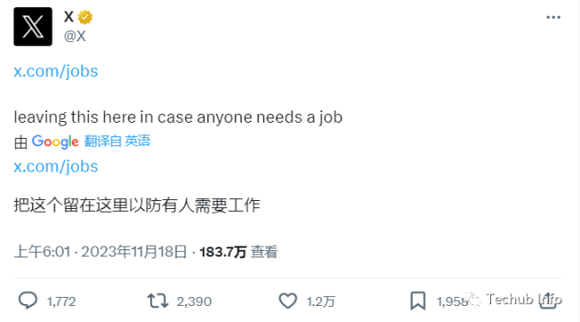“这是一场技术驱动和社会道德驱动之间的冲突,长远来看技术一定会胜出。”孔华威称。近一年来,OpenAI 为人类社会带来了巨大的冲击,同时,AI 背后的安全问题也引发了广泛关注。上个月,图灵奖获得者 Geoffrey Hinton 等 24 名 AI 专家联合发文,呼吁各国政府采取行动管理人工智能带来的风险,建议将至少三分之一的人工智能研发预算用于确保安全和合乎道德。此前,OpenAI 在一份更新中表示,出于对 AI 系统安全性的考虑,OpenAI 正组建新团队来跟踪、评估、预测「前沿模型」的发展,以防止所谓的「灾难性风险」,包括网络安全问题等。据媒体报道,奥特曼一直担忧 AI 可能对人类构成“灭绝性”威胁,而 Meta 科学家 Yann LeCun 等则认为当前 AI 能力有限,过早监管会扼杀创新。MazeGuru 副总裁 Charles 对 Techub News 对表示,技术没有国界,但是技术人员有国界。问题的核心还是对 AI 的掌控力,另外利润也非常惊人,这个事件背后最有可能的是微软和美国政府的意志。据媒体报道,OpenAI 的估值目前大约在 800 亿至 900 亿美元之间。Antimetal CEO Matt 在 X 上表示,很高兴地宣布 Sam Altman 将加入 Antimetal 担任联合首席执行官,并附上一张联合 CEO 奥特曼的名片。对此,奥特曼未做回应。马斯克旗下 X 官方账号则挂出“求职申请链接”,并表示“把这留在这里以防有人需要工作”。值得一提的是,2015 年 OpenAI 成立时,马斯克也是 OpenAI 的投资人之一。行业分析人士表示,奥特曼需要的不是工作,而是一个能实现他理想和抱负的地方。奥特曼被 OpenAI 董事会免职的本质,是理想主义被现实打败。据媒体报道,奥特曼虽然是 OpenAI 的灵魂人物,但却并不拥有股权,他曾解释称是为了防止股权利益和决策起冲突。“奥特曼是 OpenAI 的灵魂人物,OpenAI 是一个用理想主义撑起来的地方,奥特曼和布罗克曼的离开后,OpenAI 的未来发展堪忧。”该行业人士称。目前,尽管 OpenAI 在 AI 领域处于领先地位,但竞争对手也正积极追赶。据媒体报道,谷歌正在研发 Gemini 最主要、最大的版本,有望和 GPT-4 一样好。马斯克旗下 xAI 宣布将推出首个人工智能产品 Grok,其重要功能之一是能够实时抓取 X 平台内容。在此之前,X 禁止了第三方数据抓取。