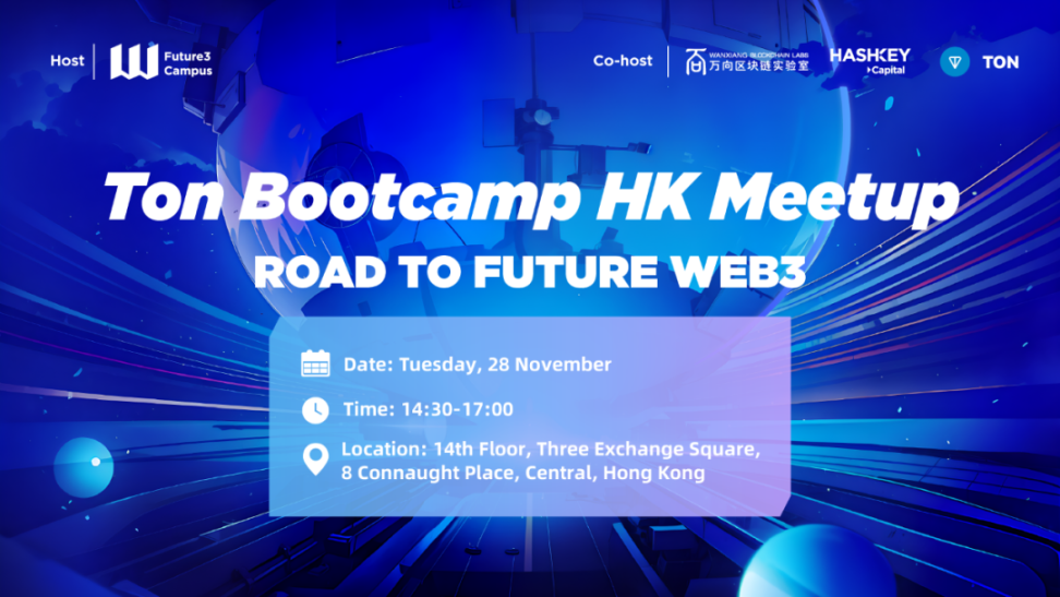 11 月 28 日(下周二)14:30-17:00,由 Future3 Campus 和 TON 基金会联合发起的「TON 孵化营」将在香港中环举办首场 Meetup。活动聚焦“Web3 未来之路”,邀请 HashKey Group 董事长兼首席执行官 / 万向区块链董事长肖风、万向区块链实验室负责人 /Future3 Campus 发起人杜宇、TON 基金会主席等重磅嘉宾莅临活动现场,为有意向参与 TON 孵化营培训、投身 Web3 生态共建的参会者们提供创业指导,链接行业资源,共谋发展。
