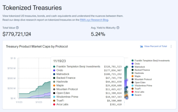 更重要的是,Centrifuge 能够通过此举进军美债 RWA 的市场,这个市场的特点是无风险、稳定生息、可规模化。目前一些美债 RWA 项目的 TVL 达到 7.79 亿美元,MakerDAO 的美债 RWA 持有量更是达到 20 多亿美元。