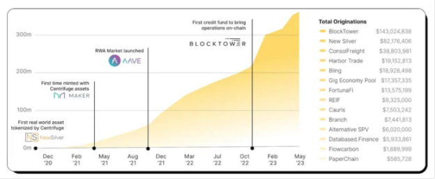 Centrifuge 从 2019 年与 BlockTower 合作在 MakerDAO 创建了第一个 RAW 资产池以来,不断为 MakerDAO 挖掘 RWA 的潜力,创建的 BlockTower 系列和 New Sliver 系列依然占到 MakerDAO RWA 资产池的大部分。