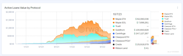 作为第一个去中心化 RWA 资产融资协议,得益于与 MakerDAO 的合作,Centrifuge 已经成为 DeFi 市场上私募信贷领域(Private Credit)TVL 最高的项目,超过了 2.5 亿美元。同时,Centrifuge 也正在构建美债 RWA 市场,吸引包括 Aave 金库等加密资本的资金。