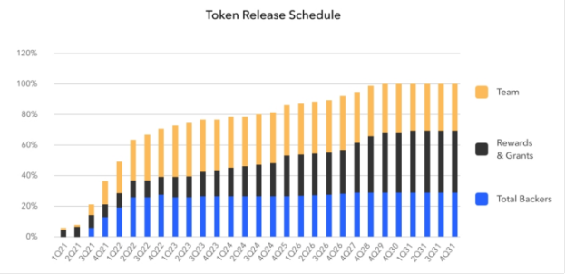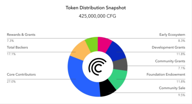 CFG 的大多数代币都长期锁定期。核心团队成员加入后有 48 个月的锁定期,之后的 12 个月进行线性释放。