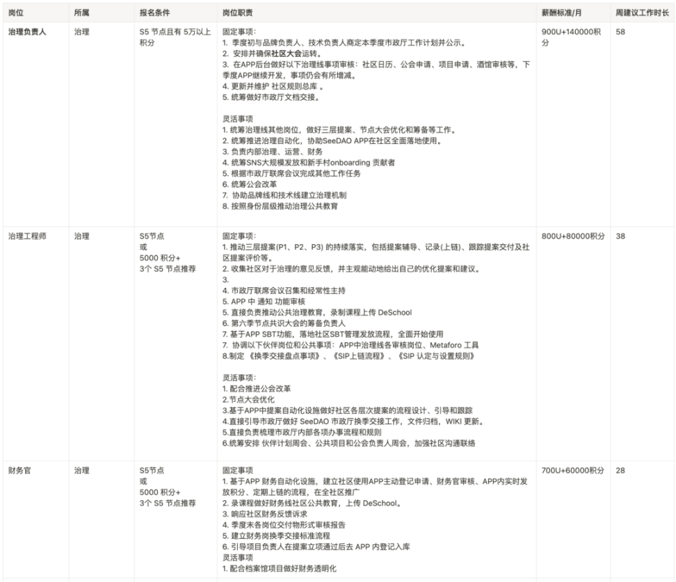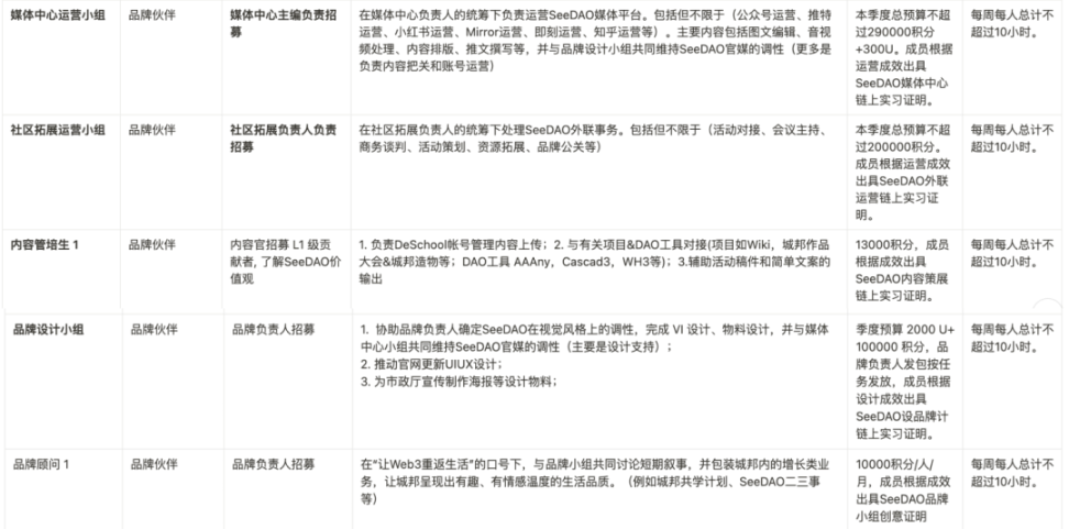 本届市政厅的治理小组各岗位职责更为明确,期望在内部治理中看到更多社区成员的“自涌现”,迸发出 SeeDAO 强大的凝聚力和创新力。