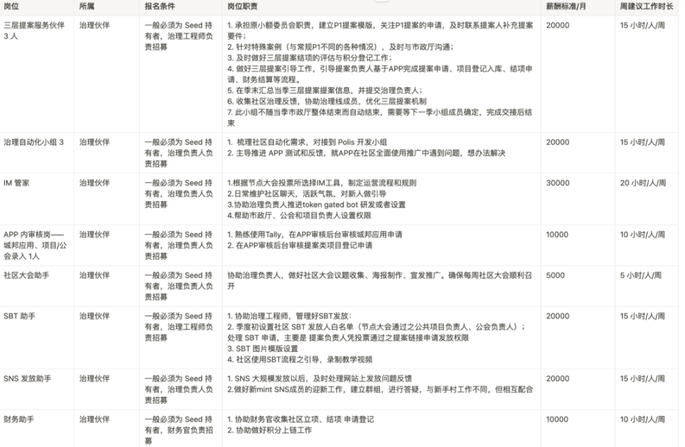 根据社区目前现状,治理自动化和游戏化尚未完成,市政厅岗位职责不仅包含按职责执行,更需要主动拓展,制定方案,发起或引导社区发起项目。