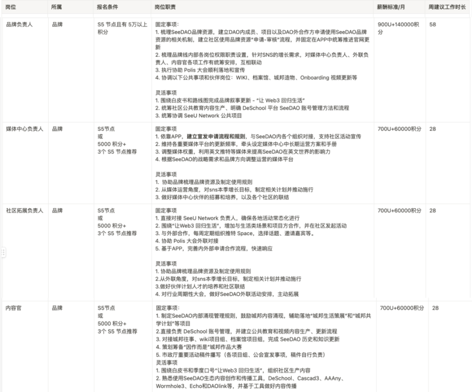 本届市政厅公共岗位竞选结束后(12 月 3 日),对相应岗位感兴趣的 SeeDAO 伙伴均可联系对应岗位的负责人。