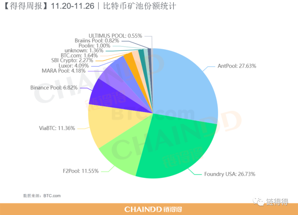 本周比特币矿池中份额无明显波动