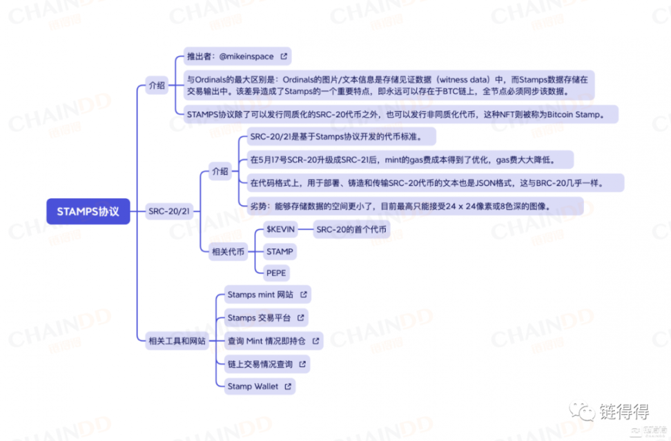 除了 Atomcial 协议外,STAMPS 协议也与 Ordinals 协议展开了竞争。其与 Ordinals 的最大区别在于:Ordinals 的图片 / 文本信息是存储见证数据(witness data)中,而 Stamps 数据存储在交易输出中。该差异造成了 Stamps 的一个重要特点,即永远可以存在于 BTC 链上,全节点必须同步该数据。