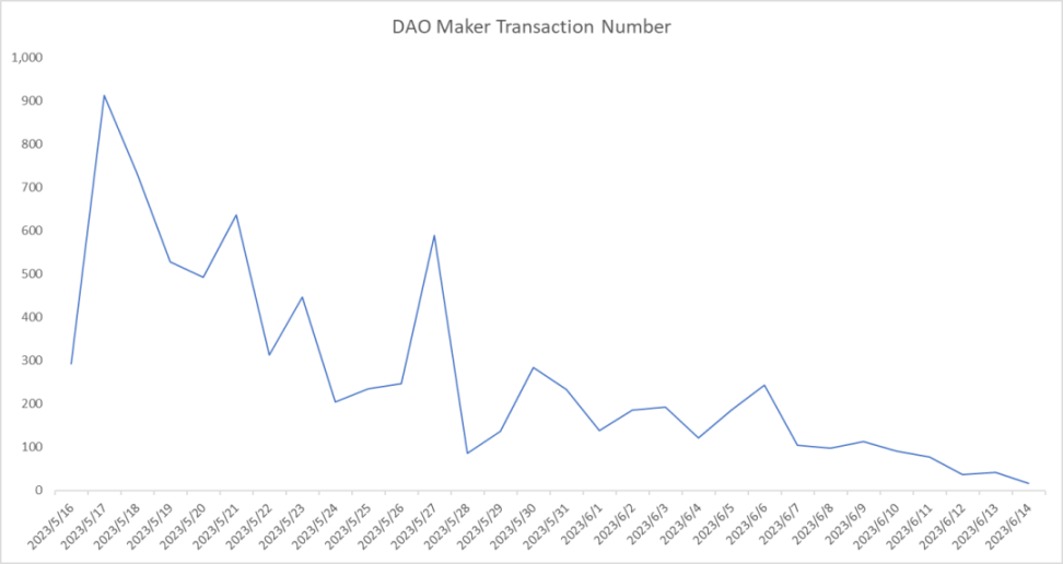 DAO Maker 平均每天实现超 250 笔交易,最高单日实现超 900 笔交易,每月能实现 8,000 笔交易。
