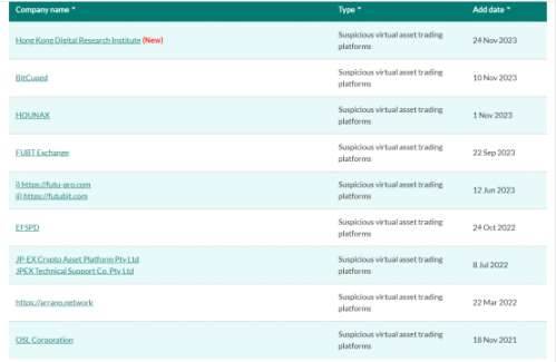 目前,证监会已识别出九个可疑的加密货币投资平台,除了 Hounax 和 JPEX 外,香港数字研究院、BitCuped、FUBT、futubit/futu-pro、EFPSD、OSL Trading 和 arrano.network 等均有在列。