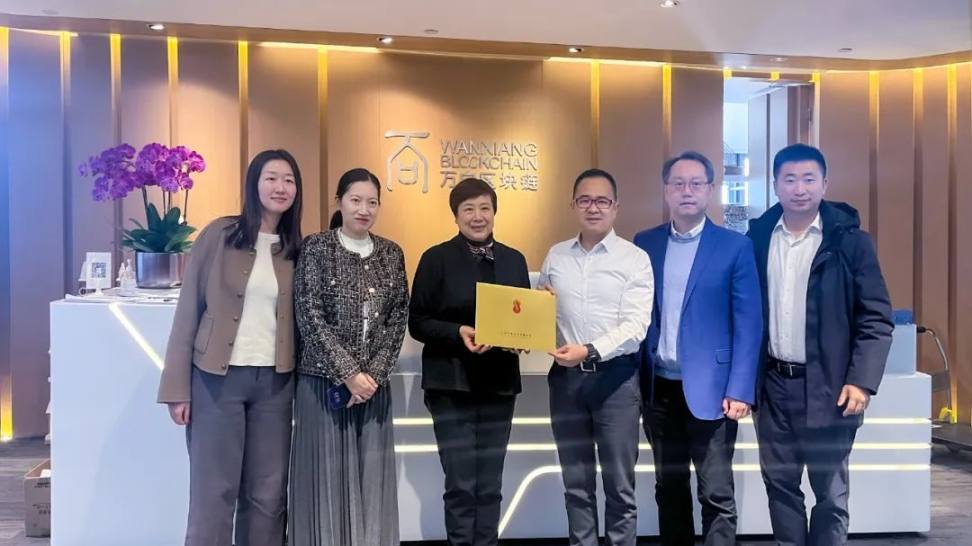 11 月 30 日上午,虹口区政协党组书记、主席石宝珍一行莅临万向区块链调研指导。万向区块链总经理陈斌陪同参观了中国(上海)北外滩区块链应用示范展示中心,并就万向区块链的最新业务进展以及企业战略布局进行了汇报。